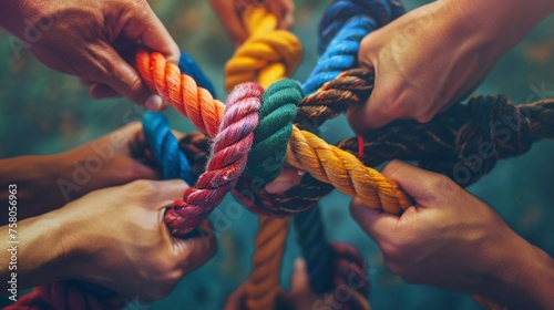 Team and colorful braid. Background shows the unity, solidarity, strength, partnership, teamwork, cooperation, power, diversity, support, integratio, and communication. Network and empower concept.