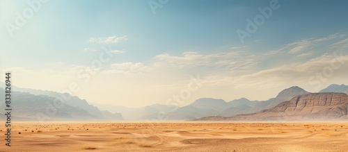 A scenic bare mountain range and sandy valley desert in the Middle East or Africa make a captivating landscape for photography with ample copy space image in a horizontal frame.