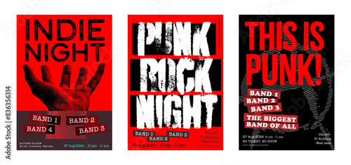 concert poster for cafe or pub event, indie music poster, punk rock night, and rock music, editable vector design, with grunge and paper texture background