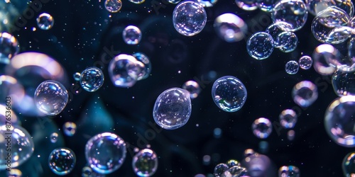 many air bubles from several sizes, inside a water aquarium on a black background,