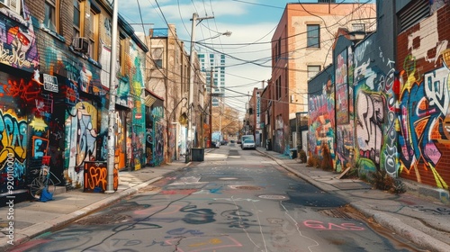 A city road with street art and murals, adding color and creativity to the urban landscape.