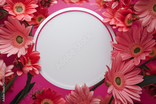 Biała okrągła kartka i różowe kwiaty - kartka na życzenia