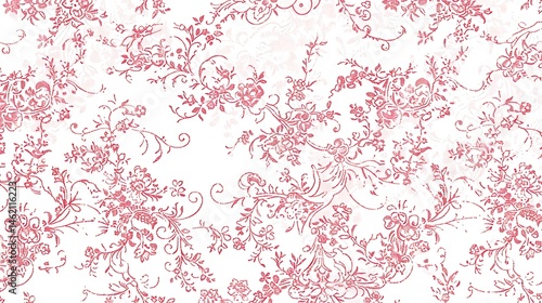 Delicate rose floral pattern, pink flowers scattered gracefully on a white canvas