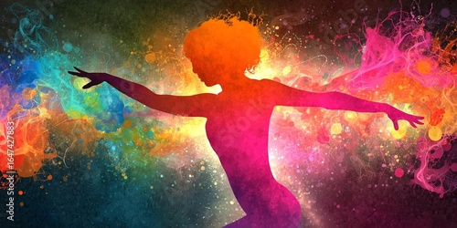 DYNAMICZNA SYLWETKA TANCERZA W KOLOROWYM, PŁYNNYM TLE