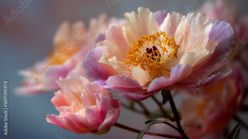 Artystyczna piwonia – makro, płatki kwiatów, pastelowe kolory, natura