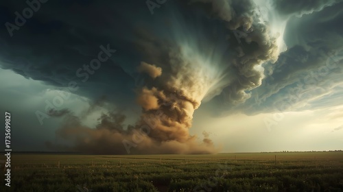 tornado , a large and dark swirling tornado