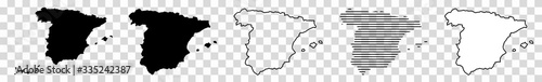 Spain Map Black | Spanish Border | State Country | Transparent Isolated | Variations