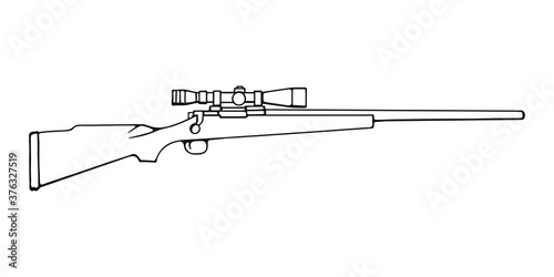 Sniper rifle with telescopic sight. Vector Outline Illustration