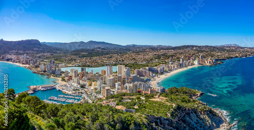 Beaches and mountains of Calpe. View from the natural park of Penyal d'Ifac, Spain