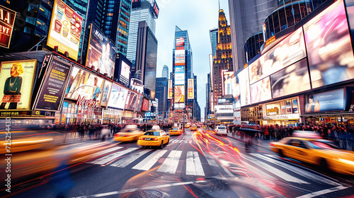 Dynamic Times Square Rush Hour with Blurred Traffic and Pedestrians