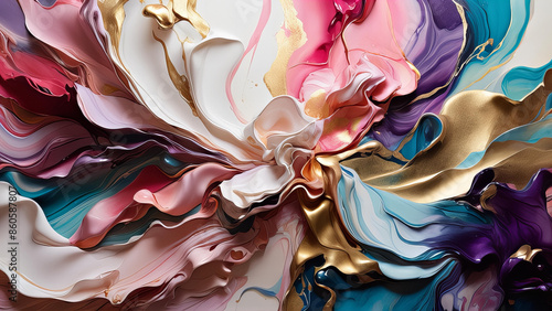 Tło w jasnych pogodnych kolorach - róż, fiolet, niebieski i granat, plamy farby, wykończone złotą farbą, malarstwo artystyczne