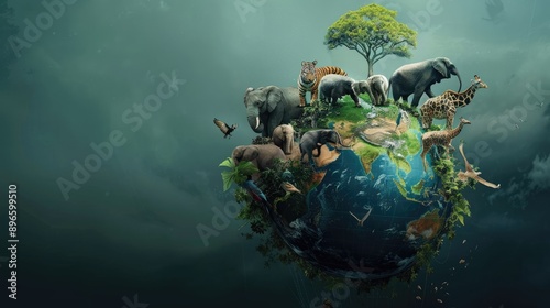 Creative Earth Day or World Wildlife Day concept, with animals and a globe, highlighting conservation efforts