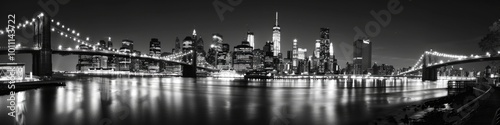 Black And White City. New York City Skyline at Night with Brooklyn Bridge in the Background