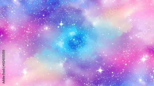 Adorable fantasy starry galaxy in vibrant unicorn hues Repeating pattern in princess colors ideal for gift wrapping fabric clothing textiles surfaces and scrapbook materials 2D cartoon art
