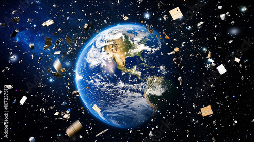 Ziemia otoczona przez liczne kawałki kosmicznych śmieci.
