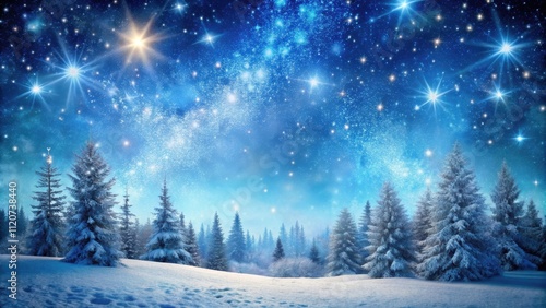 Serene winter wonderland with falling snowflakes under a starry night sky, winter, wonderland