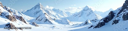 Snow-capped mountains with rocky outcroppings, terrain, snow