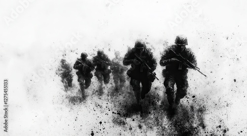 Abstract depiction of soldiers running into battle