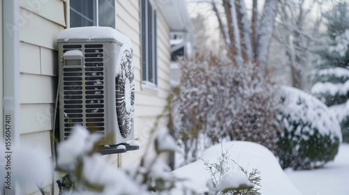 outdoor heatpump covered in snow