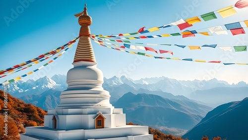 Ancient buddhist stupa and pagoda architecture in Kathmandu, Nepal, with a clear sky backdrop