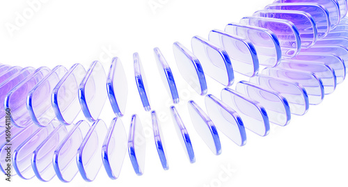 3d background with glass holographic rectangular plates rows. Abstract wave curve pattern. Transparent rectangle shapes with rounded corners, light purple gradient and motion effect
