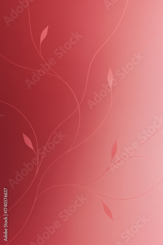Minimalist Crimson to Blush Pink Gradient with Elegant Vine Lines
