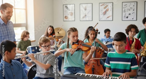 Celebrating children's day with kids playing musical instruments in classroom