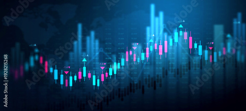 Business financial chart with moving up arrow graph.Financial data charts with glowing stock market graphs.Stock market investment data and analysis finance graph.