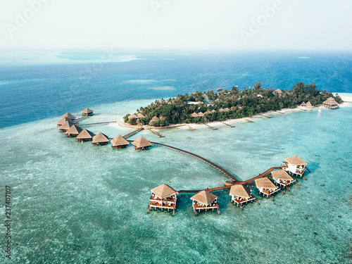 Island resort in Indian ocean, Rannalhi, Maldives aerial view