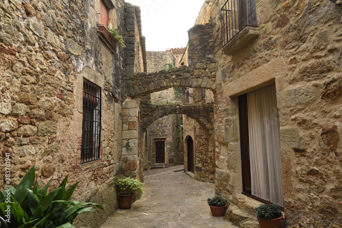 streets and arch of the old town of medieval village of Pals, Girona province, Catalonia, Spain