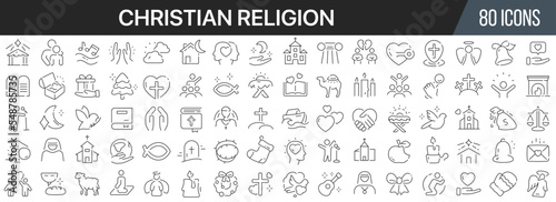 Christian religion line icons collection. Big UI icon set in a flat design. Thin outline icons pack. Vector illustration EPS10