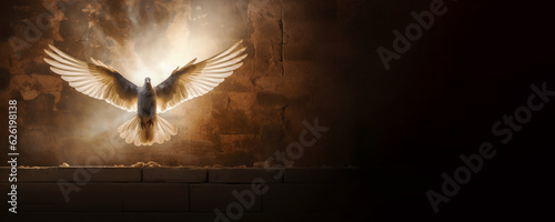 Winged dove with copy space, a representation of the New Testament Holy Spirit