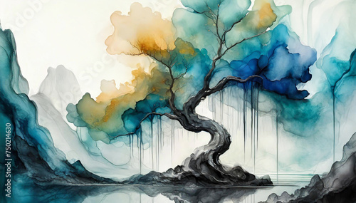 Drzewo abstrakcja akwarela