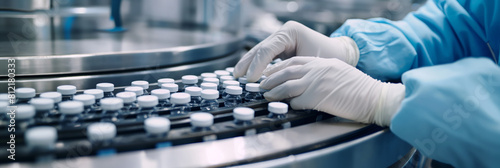 Precision meets safety. A person in gloves works on a machine in a laboratory. Generative AI
