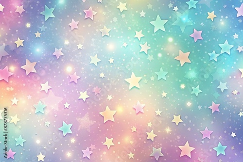 Rainbow unicorn fantasy background with stars and sparkles. Holographic illustration in pastel colors. Bright multicolored sky