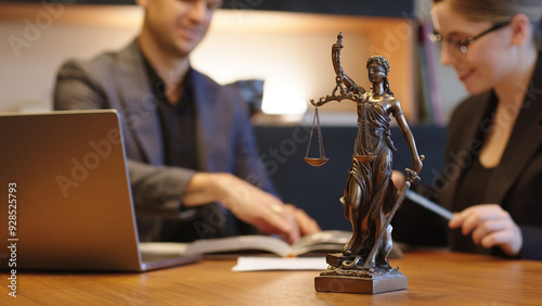A lawyer meets with a new client. A young male lawyer in a suit sits at an office desk, shares legal advice, explains the inheritance process, tries to help. Legal advice concept
