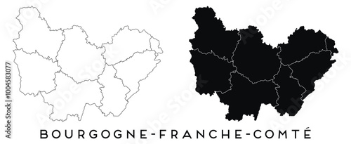 Bourgogne Franche Comte map of regions districts vector black on white and outline