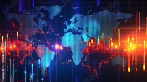 Global markets overview with dynamic financial data overlaying a detailed world map background, highlighting key economic regions