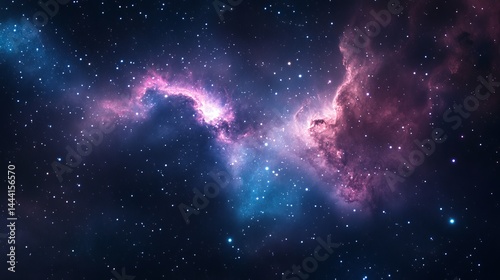 Stunning cosmic nebula with vibrant pink and blue hues in deep space sky art dark stars night light