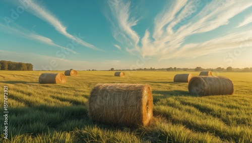Autumn landscape showcasing hay stacks along Prince Edward Island's North Cape Coastal Drive, Canada