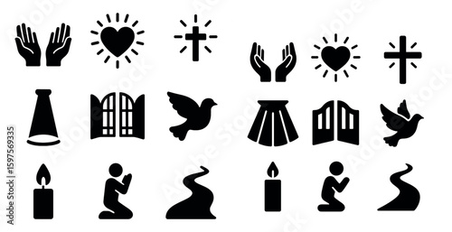 Spiritual and religious silhouette icons set – solid, faith, worship symbols