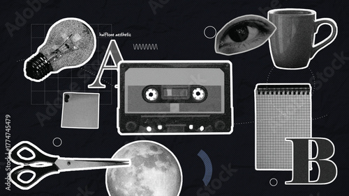 Monochrome Collage Elements Retro Halftone Texture Vector Design Pack