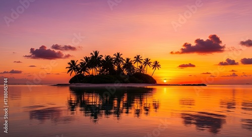 Beautiful Tropical Island Sunset Serenity Reflection Palms