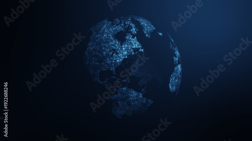 Global Data Network Concept. Showing Earth Connected by Glowing Data Lines and Nodes, Representing Worldwide Communication, Big Data Exchange, Cloud Computing, and Advanced Technology Infrastructure.