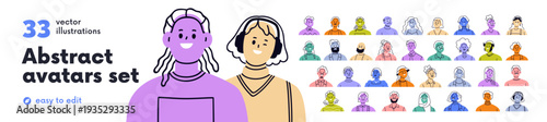 Modern abstract avatars set. Colored head portraits of diverse people. Happy smiling faces of men and women characters, drawn user profiles. Flat vector illustration isolated on white background