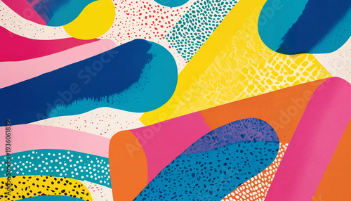 Risograph print texture background with hand drawn elements and bold saturated expressive colors