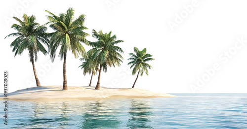 Tropical island with palm trees and sea water, isolated on transparent cutout background