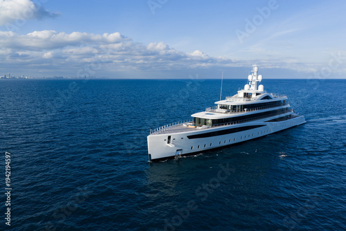 Motorboat sailing at sea. Luxury private yacht in sea. Motor yacht luxury vessel. Boat motor aerial. Vacation on summer. Aerial view motorboat. Luxury lifestyle. Vacation on summer. Yacht at sea