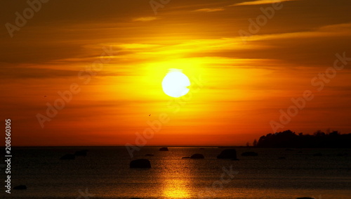 Piękny zachód słońca nad Bałtykiem - wszystkie odcienie żółci i czerwieni