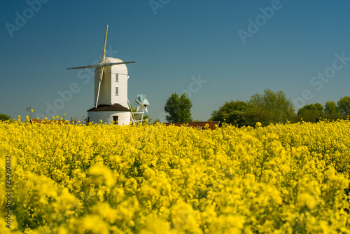 White Windmill in yellow rapeseed field